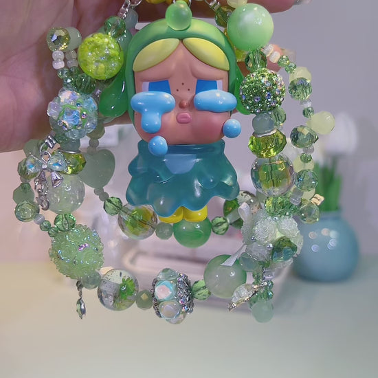 Dive into an ocean of whimsy with Pop Mart’s Crybaby Sea Monster charm! Crybaby, with her teary - eyed expression and translucent sea - inspired outfit, looks like a little mystic creature washed ashore from a mint - green tide. The handmade bead chain is a work of art—shades of mint, turquoise, and glistening crystal beads wrap around her, plus delicate flower and charm accents. Each bead and pendant whispers of underwater magic, capturing the sweet - sad allure of a sea monster’s tale.