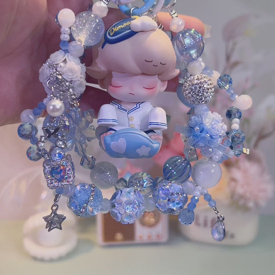 Set sail into a sea - breeze fantasy with Dimoo Dream of Sailing! Dimoo, curled up in a cozy sailing - themed outfit, looks like he’s drifting off to dreamy ocean adventures. The handmade bead chain is a blue - hued wonder—sparkling crystals, sea - inspired beads, and star - lit pendants wrap around him, each detail brimming with the calm and magic of a sunset sail.