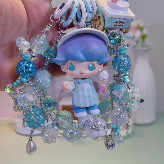 Dive into a world of sweet, summery fun with Dimoo Ice Cream! This adorable figure, decked in cool blue tones and a playful, ice - cream - selling vibe, is surrounded by a halo of shimmering beads, crystal - like accents, and whimsical, dessert - themed charms. Handcrafted to capture every ounce of carefree, treat - filled energy—from the cute, cone - holding pose to the charming, candy - cart detail—this charm is a love letter to sunny days, sweet indulgences, and playful adventures.