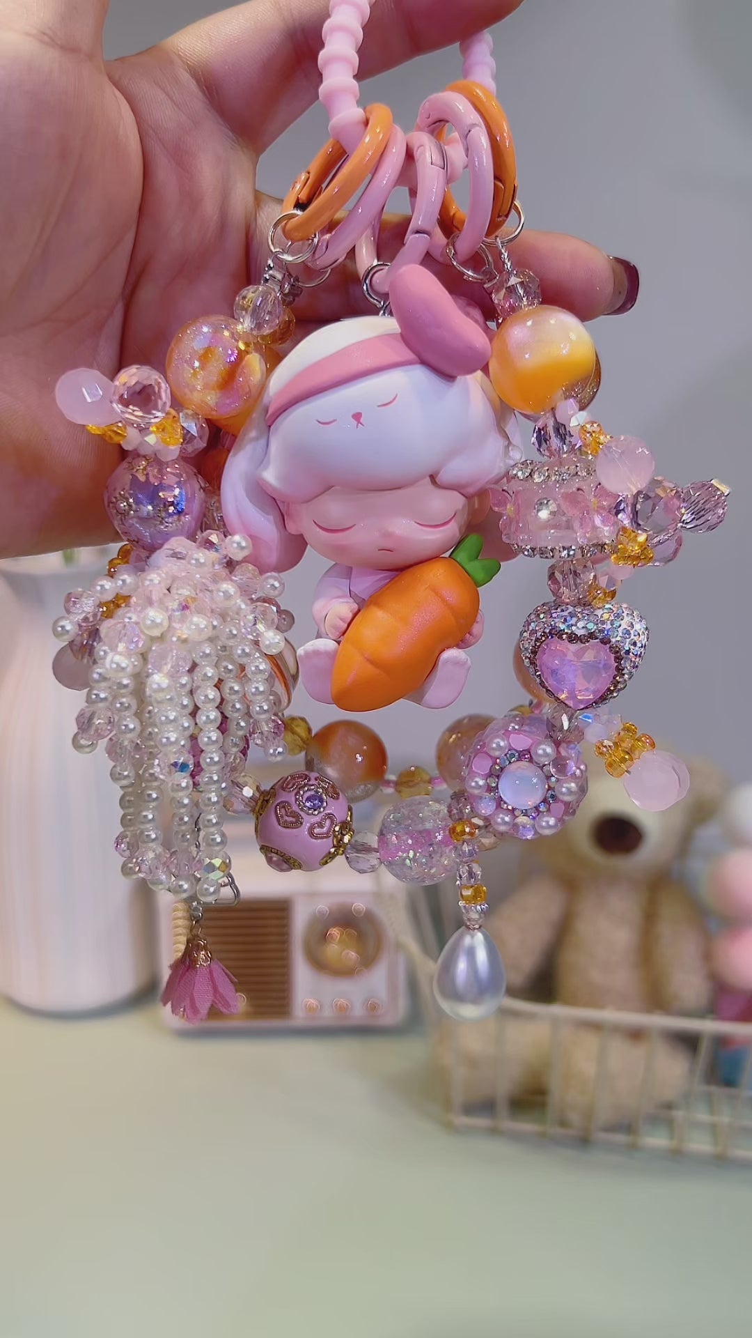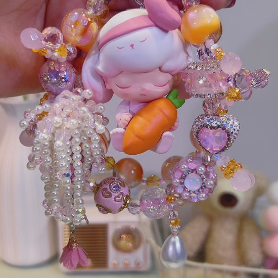 Drift into a world of pastel - hued serenity with Dimoo “Sleepy Bunny”! This precious figure, cuddled up with a giant carrot and wrapped in soft, dreamy pinks, is surrounded by a halo of shimmering beads, crystal - like accents, and sweet, bedtime - inspired charms. Handcrafted to capture every ounce of cozy, childlike peace—from the closed - eye slumber to the adorable, bunny - eared cuteness—this charm is a love letter to lazy afternoons and sugar - sweet dreams.
