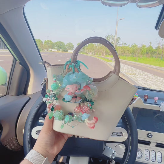 Drift into a serene, celestial dream with Dimoo “The Jade”! This ethereal figure, nestled among pastel - blue clouds and adorned in jade - hued charm, is surrounded by a shimmering halo of iridescent beads, crystal - like accents, and delicate floral details. Handcrafted to capture every whisper of tranquility—from the flowing clouds to the soft, dreamy palette—it’s a portal to calm for your bag or car. Whether you’re a Dimoo collector or crave accessories that blend fantasy and peace, this charm turns daily commutes into a journey through a misty, magical realm. Let it be your gentle reminder to pause and breathe—adding a touch of Pop Mart’s whimsical artistry to every ride!
