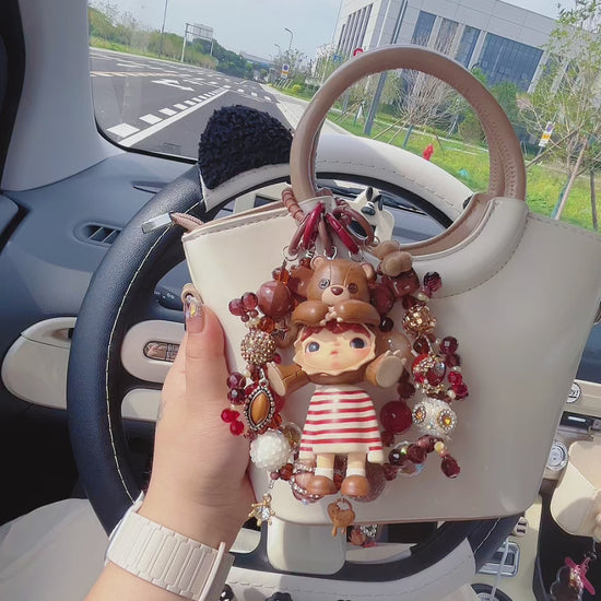 Dive into the whimsical world of Hirono Shelter with this charming charm! This adorable Hirono figure, dressed in a cute striped outfit and surrounded by a gorgeous array of beads and little bear decorations, is a perfect blend of cuteness and artistry. It's an ideal #carcharm to add a touch of fantasy to your car rides or a #bagcharm to make your bag a unique fashion statement. Crafted with great attention to detail, it's a must - have for Hirono fans and collectors. Let this Hirono Shelter charm bring a sense of warmth and story - telling to your daily accessories!