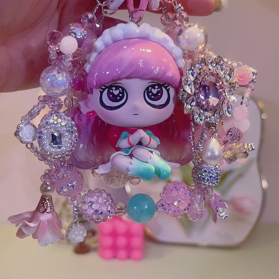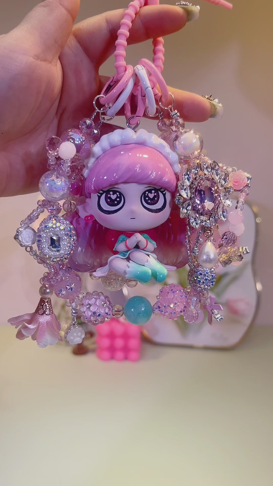 6 Dive into a sweet - pink sparkling fantasy with Kiki Pink Crystal! This adorable Kiki, surrounded by a handmade bead chain full of shiny pink and crystal - like beads, plus charming pendants, looks like a little magic from a pink crystal dream. Every detail oozes a sense of cute, sparkling charm.
