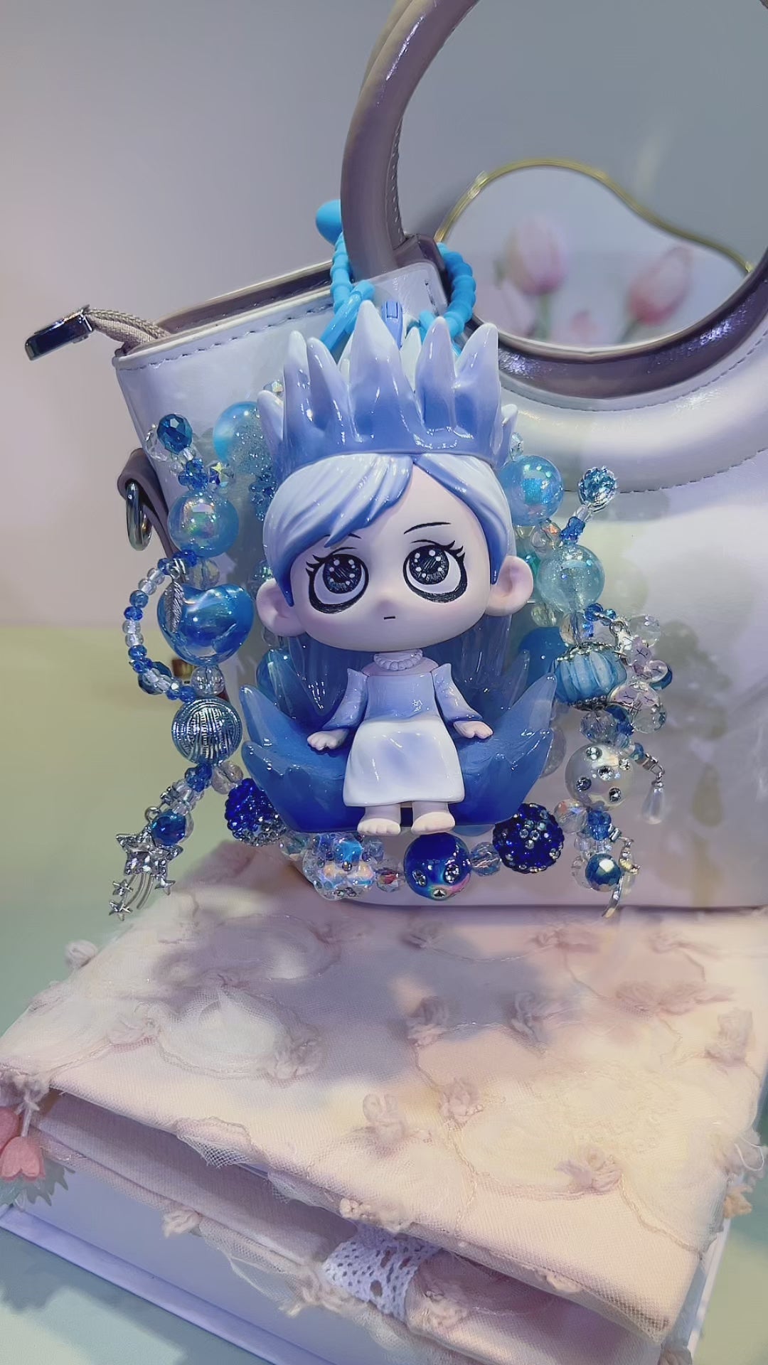 14 Step into a frosty - elegant magical world with Kiki White Crystal! This unique Kiki, styled with a white crystal - like aesthetic and a regal, icy presence, is surrounded by a handmade bead chain full of cool - toned blue beads and charming, crystal - inspired pendants. Every detail exudes a sense of refined, magical elegance, like a character from a winter fairy tale.