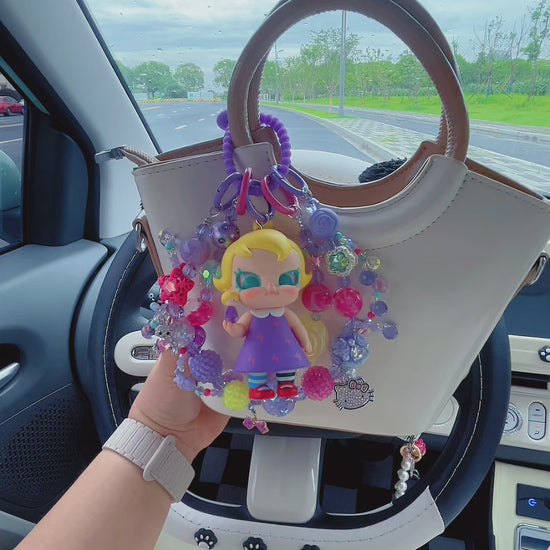 Get ready to brighten up every drive! This Molly “How Old Are You” car charm is a burst of joy on wheels. The iconic Molly figure, rocking that purple lightning - bolt dress and signature style, is surrounded by a rainbow of sparkling beads, cute charms like the little bunny and Hello Kitty accents, and adorable decorative elements. Each bead shimmers with iridescent magic, and the mix of pinks, purples, yellows – it’s like carrying a piece of a candy - colored dream.