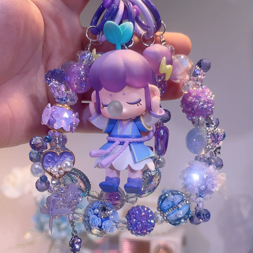 At the heart of this beaded charm is the Nanci figure. Nanci has soft, purple - hued hair styled in cute buns, adorned with small, charming decorations like a blue leaf - shaped piece and a tiny yellow butterfly, symbolizing the arrival of spring and the awakening of insects. Her eyes are gently closed, with a bubble at her mouth, exuding a peaceful and dreamy expression, as if she's immersed in the beauty of the season.