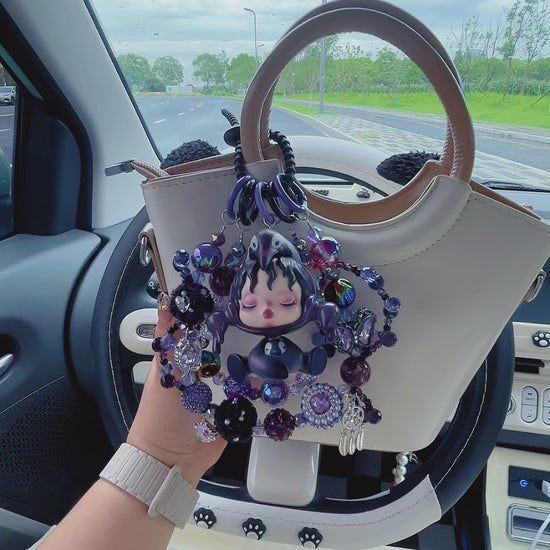 Unleash a wave of edgy - cute vibes every time you step into your car! This Skullpanda Penguin car charm is a total show - stopper. The iconic Skullpanda figure, donned in a mysterious dark - toned outfit with the Penguin element, is encircled by a spellbinding mix of purple, black, and iridescent beads, plus those eye - catching crystal accents and unique pendants. From the intricate flower - like adornments to the delicate butterfly charm, every detail screams “dark fantasy done right”.