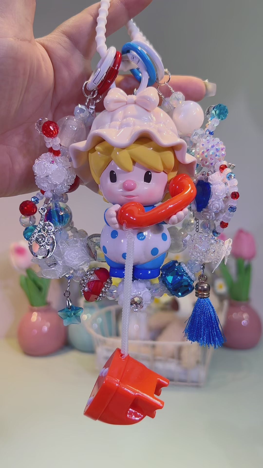 Step into a retro - chat cute world with Sweetbean As If I'm Talking! This adorable Sweetbean, styled with a retro telephone and a playful, chatting pose, is surrounded by a handmade bead chain full of bright - toned beads and charming, retro - themed pendants. Every detail exudes a sense of fun, nostalgic cuteness, like a moment of a sweet, old - fashioned chat.