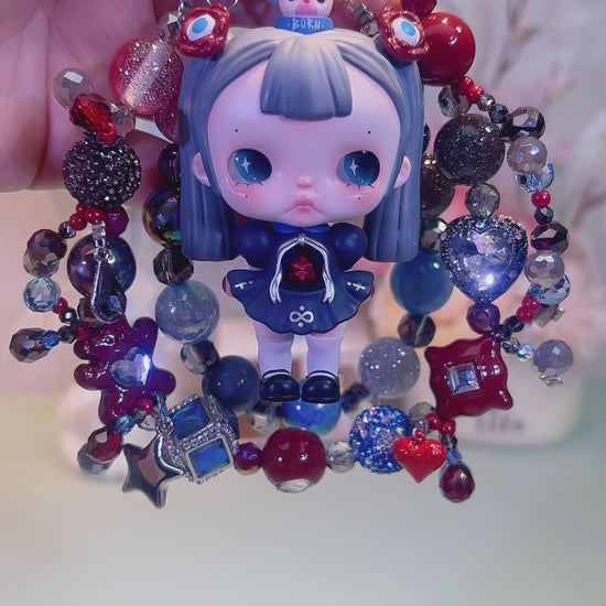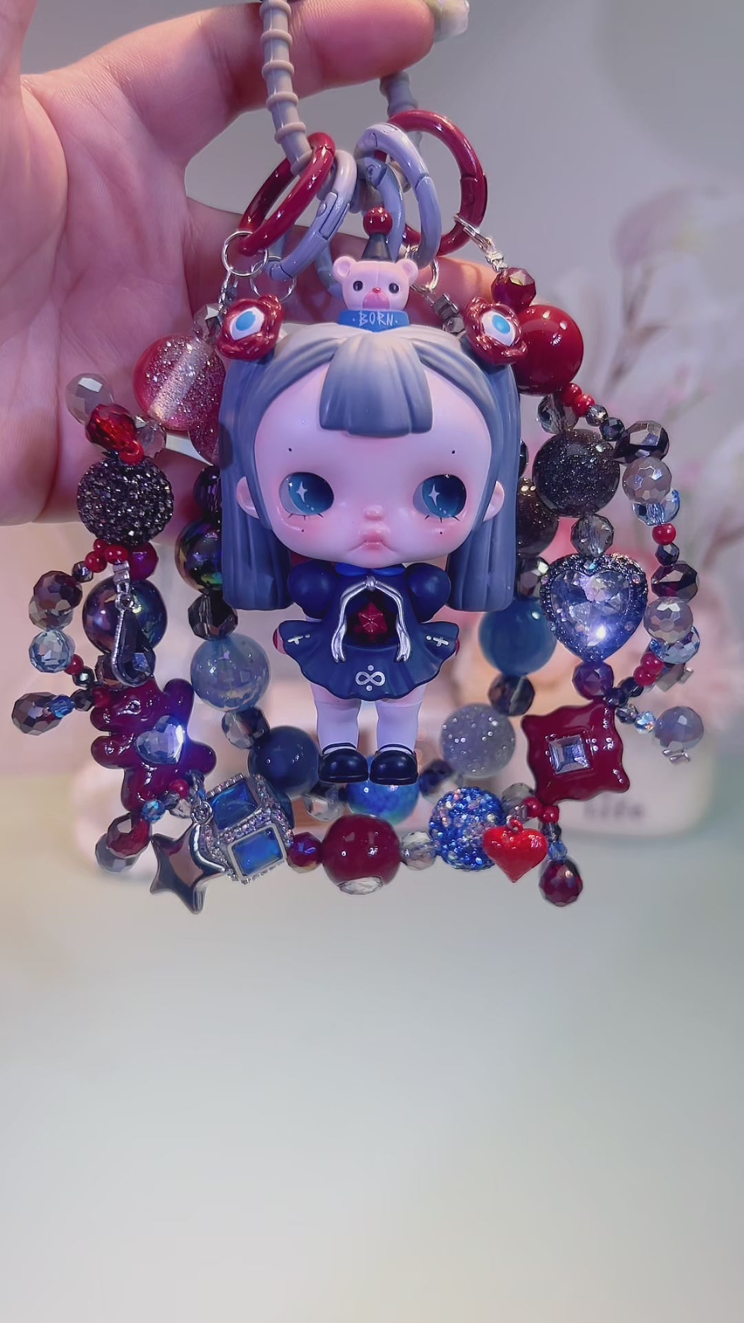 Step into the whimsical world of Pop Mart’s TinyTiny Balance charm! TinyTiny, with her big, expressive eyes and unique outfit, looks like a little character from a playful yet edgy storybook. The handmade bead chain is a visual treat—vibrant red, cool blue, and sparkling crystal beads mix together, along with cute and quirky pendants. Each bead and accessory adds to the charm, capturing the fun and distinctive essence of the TinyTiny series.