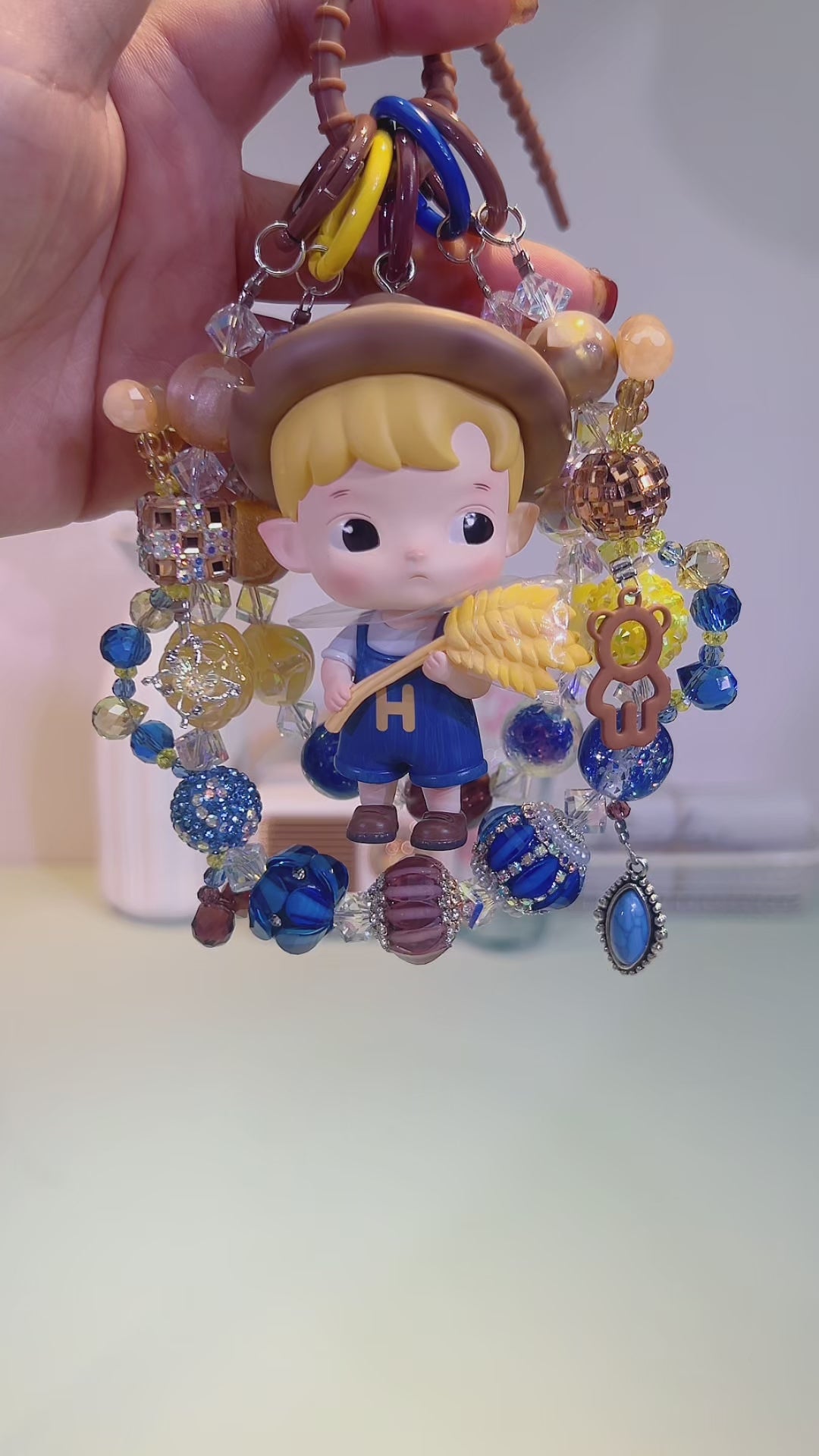 Step into a world of sunny, pastoral charm with Haci “Little Farmer”! This adorable figure, clad in a cozy blue overall and a rustic hat, is surrounded by a halo of shimmering beads, crystal - like accents, and sweet, farm - inspired charms. Handcrafted to capture every ounce of playful, countryside energy—from the wheat - hugging cuteness to the earthy, harvest - themed details—this charm is a love letter to simple, rural joys and childlike wonder.